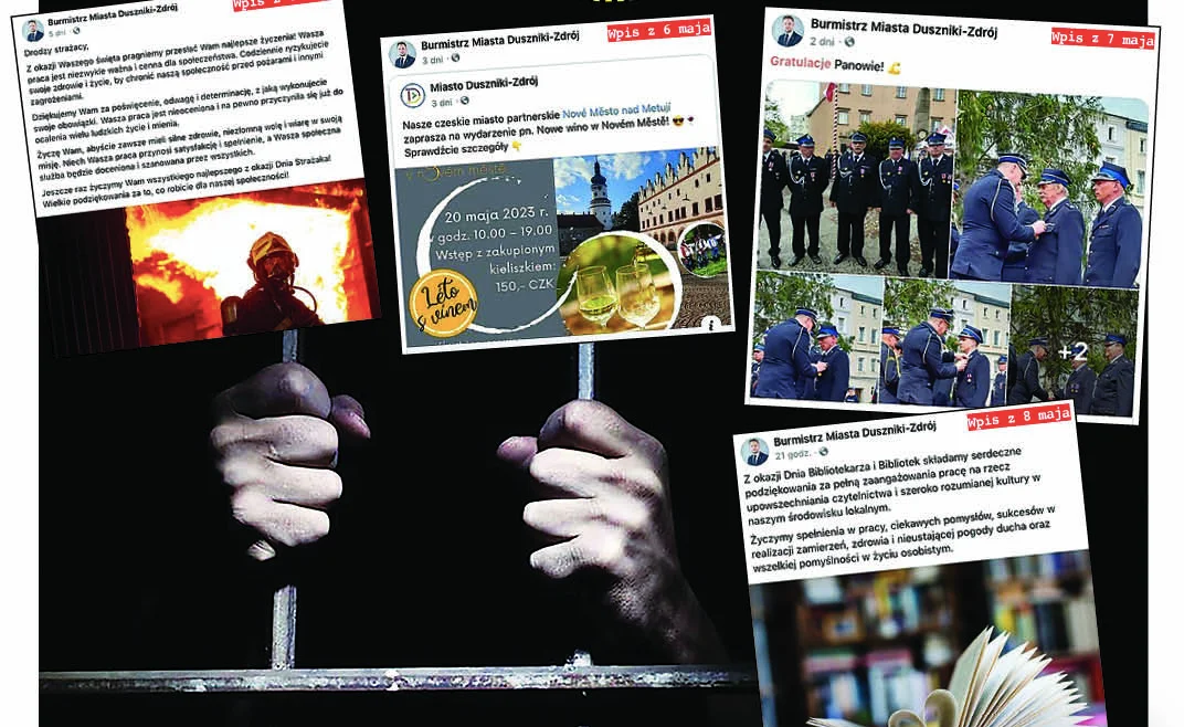 Jednak na oficjalnym profilu burmistrza Piotra L. publikowane są w maju nowe posty z życzeniami da strażaków i bibliotekarek, a nawet z zaproszeniem na imprezę do partnerskiego miasta w Czechach. W tekstach ktoś, kto je tam zamieszcza (współpracownicy Piotra L.), używa liczby mnogiej: pragniemy, dziękujemy, składamy, życzymy. Każdy nowy post firmuje zdjęcie aresztowanego burmistrza jego imię i nazwisko. Do tej dziwnej sytuacji odniósł się radny Jarosław Kwolek. Jego opinia w ramce poniżej.