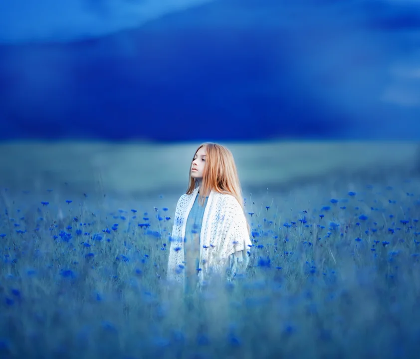 ja odczuwałam. Cieszę się, że mieszkam na wsi. Tutaj jest spokój, cisza, sielanka, piękno zmieniających się pór roku i mogę to zatrzymywać i pokazywać. Nagle ludzie dostrzegają, że wszystko dokoła jest fascynujące. Ale dopiero na fotografii. Nie ma też złej pogody na sesje, są źle dobrane ubrania. Przekonałam się o tym. Jesień była dla mnie jedną z najgorszych pór roku, a teraz kocham tę porę roku za paletę kolorów, wirujące liście w parku, za grzane wino, gorącą czekoladę, pachnący cynamonem dom. Za ciepłe koce i zaparowane okna. Za mgłę, która wita mnie rano. Za świeczki, rozpalane nocą. Wtedy zdjęcia są naprawdę klimatyczne i można poczuć tą magię. Ostatnio szukałam pola pięknych kwiatów. Powiedziałam sobie, że muszę znaleźć chabry. Były pola, ale tych chabrów było naprawdę mało. Nie dałyby takiego pięknego efektu, jak całe pole. Gdy znalazłam wymarzone pole, to zadałam sobie pytanie: jakie zdjęcie chcę wykonać. Co ma przedstawiać? Znalazłam modelkę, ubrałam ją na biało, miała koszyk na plecach, a w koszyku nazbierane kwiaty i książkę w ręce. Pytań do zdjęcia jest dużo, a odpowiedzi jeszcze więcej. To jest indywidualna kwestia i każdemu z osobna zostawiam zdjęcie do interpretacji. Nie opisuje fotografii, ponieważ obraz może pokazać więcej niż ja sama o nim napiszę.