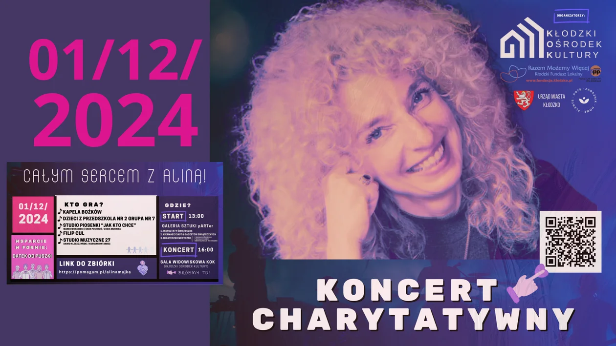 Kłodzko. Koncert organizowany jest z myślą o Alinie Majce – osobie, której los poruszył społeczność Kłodzka. Dzięki zaangażowaniu wielu lokalnych grup i artystów, przygotowano program artystyczny, który ma nie tylko dostarczyć rozrywki, ale przede wszystkim zebrać środki na wsparcie dla Aliny. W internecie w dalszym ciągu jest dostępny link do zbiórki online, a na miejscu w dniu koncertu dostępne będą puszki na datki, co pozwoli każdemu dołożyć swoją cegiełkę.