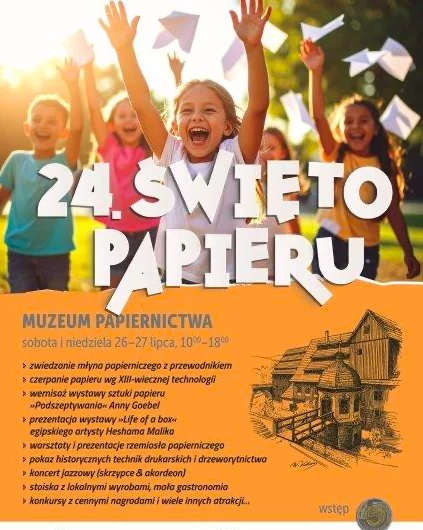 Nie zabraknie też atrakcji dla najmłodszych. Specjalne warsztaty i rodzinny konkurs wiedzy i sprawności pozwolą poznać tajniki dawnego papiernictwa i zasad ekologii.