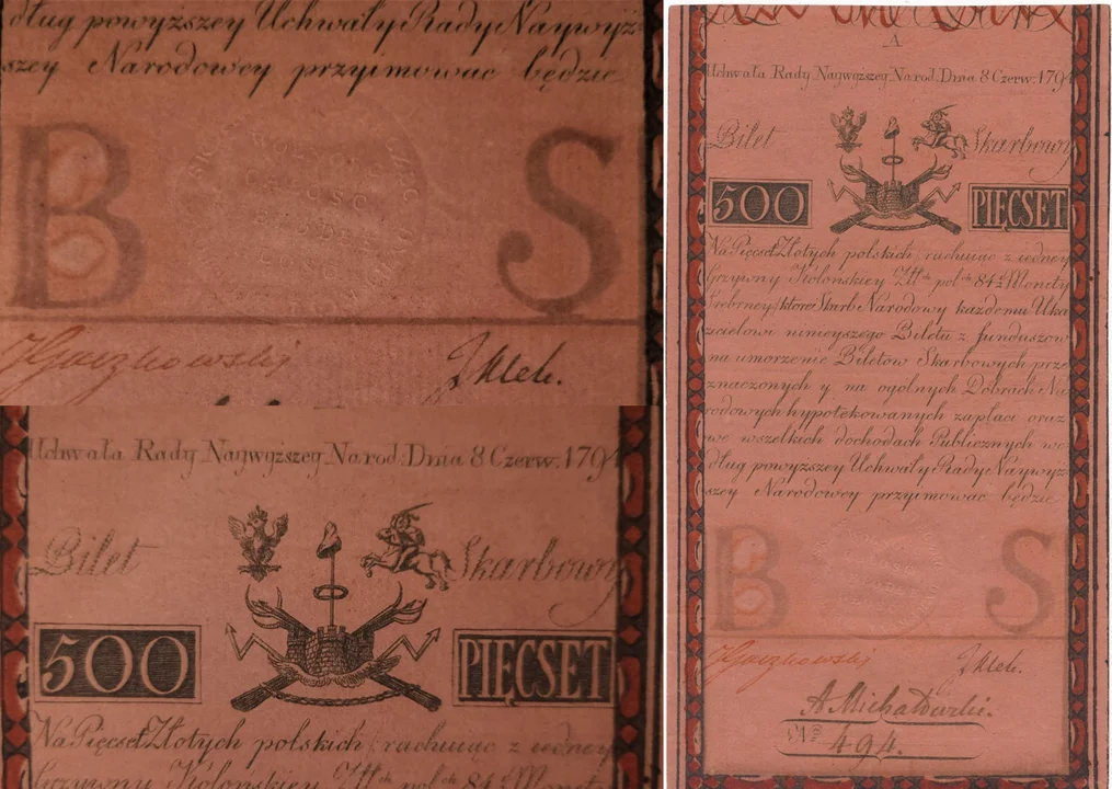 Do zasobów udało się nam pozyskać niemal kompletną kolekcję banknotów insurekcji kościuszkowskiej z roku 1794! Do nielicznych braków należały dotychczas dwa banknoty o nominałach 500 zł i 1 zł, stanowiące najrzadsze polskie pieniądze papierowe