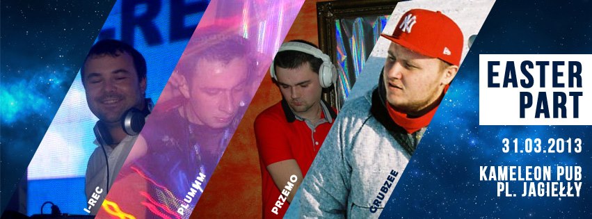 W niedzielę wielkanocna impreza w pubie Kameleon (pl. Jagiełły 1). Od godz. 19.00 wystąpią didżeje: Plumm, Przemo, Grubzee oraz I-REC, którzy przedstawią dźwięki house'u, deepu, hip-hopu, czy też reggae.