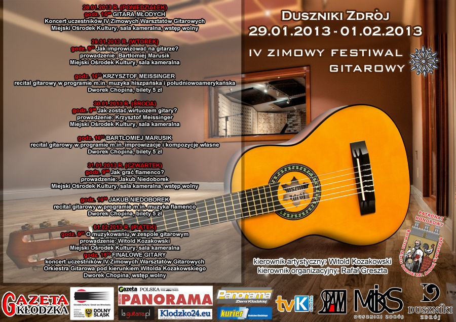 Oprócz tego w pierwszym i ostatnim dniu Festiwalu wystąpi zdolny gitarowy narybek. Bo Festiwal towarzyszy IV Zimowym Warsztatom Gitarowym z udziałem młodzieży z różnych stron Polski, m.in. z Warszawy, Olsztyna, Łowicza, Dęblina, Krapkowic i Środy Wielkopolskiej. Oczywiście nie zabraknie adeptów gry na gitarze z Dolnego Śląska: z Wrocławia, Wałbrzycha, Kłodzka i Bystrzycy Kłodzkiej.