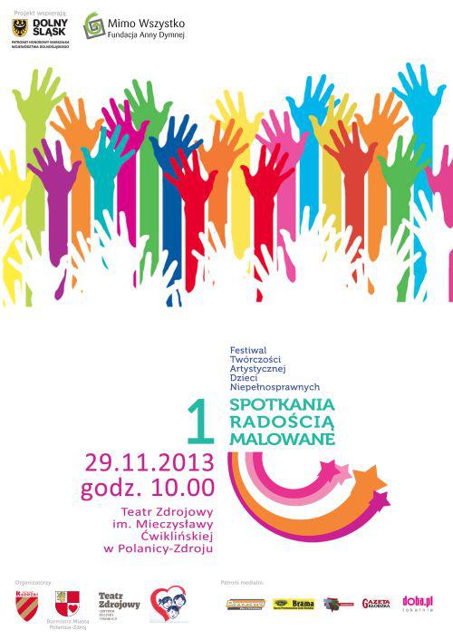 Festiwal Twórczości Artystycznej Dzieci Niepełnosprawnych pod hasłem "Spotkania radością malowane" odbędzie się 29 listopada o godz. 10.00 w Teatrze Zdrojowym im. Mieczysławy Ćwiklińskiej w Planicy - Zdroju.