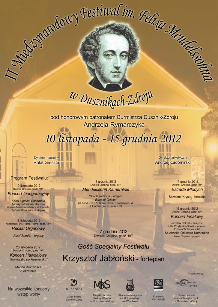 Felix Mendelssohn odwiedził Duszniki-Zdrój w 1823 roku. Kompozytor mieszkał w posiadłości w swoich stryjów. Podczas pobytu wykonał koncerty solowe i z orkiestrą. Festiwal odbywa się właśnie na pamiątkę tych wydarzeń.