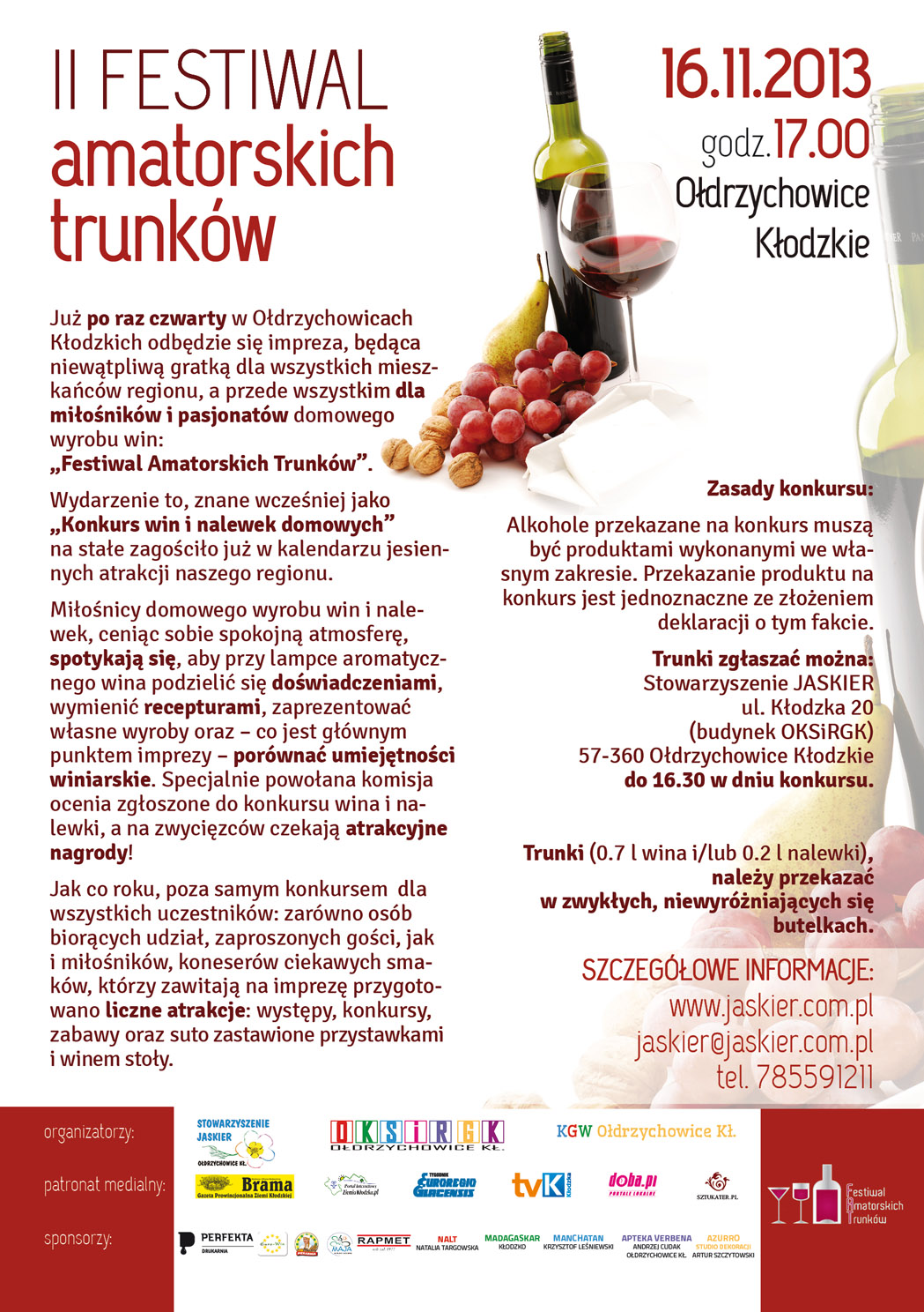Trunki można zgłaszać na: Stowarzyszenie Społeczno - Kulturalne "JASKIER", 57 - 360 Ołdrzychowice Kłodzkie, budynek OKSiRGK, do 16.30 w dniu konkursu.