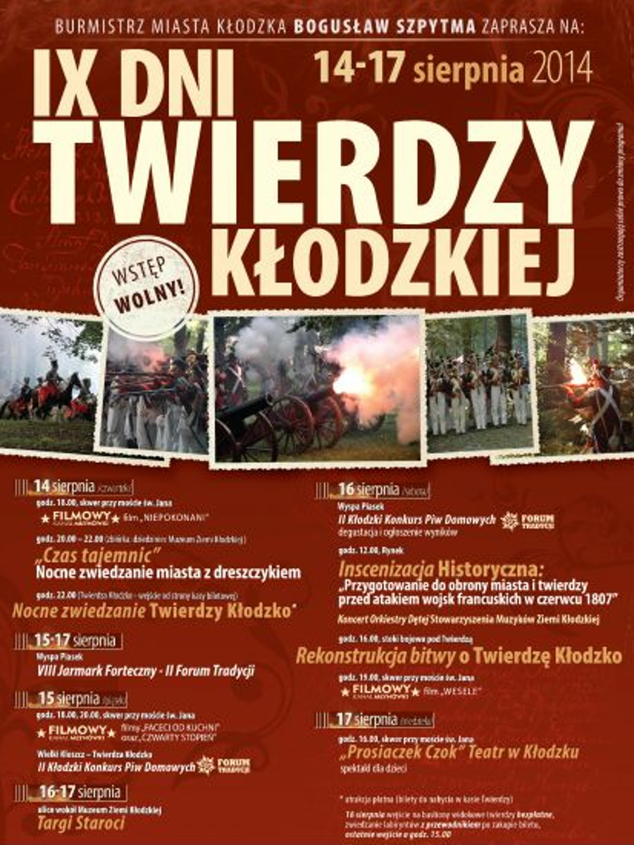 Czterodniowe spotkania z okazji Dni Twierdzy odsłonią przed nami liczne atrakcje zarówno historyczne jak i tradycyjne. Od 14 do 17 sierpnia zobaczyć będzie można m.in. rekonstrukcję bitwy, uczestniczyć w jarmarku czy targu staroci. Początek spotkania odbędzie się 14 sierpnia o godzinie 18:00.