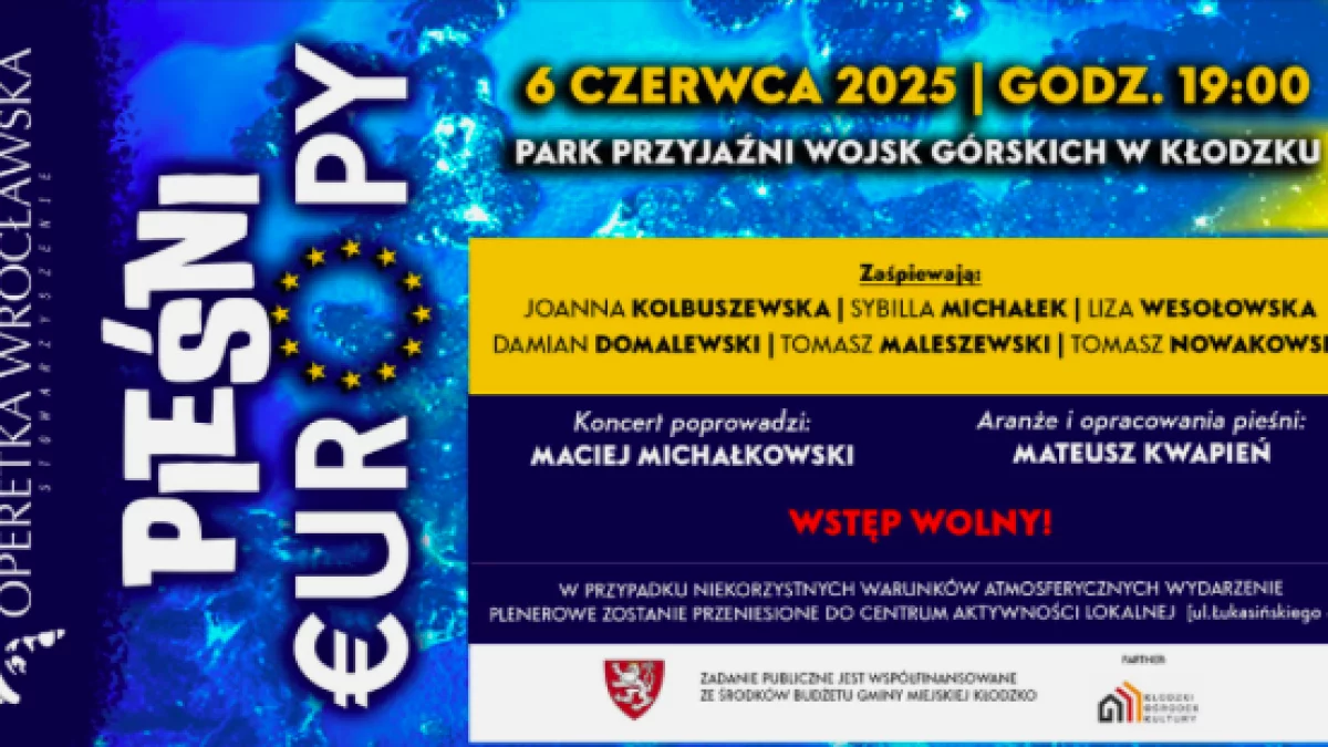 Miłośnicy muzyki i kultury europejskiej mają powód do radości – już w czwartek, 6 czerwca o godzinie 19.00, w malowniczym Parku Przyjaźni Wojsk Górskich w Kłodzku odbędzie się wyjątkowe wydarzenie muzyczne: koncert „Pieśni Europy" organizowany przez Stowarzyszenie Operetka Wrocławska.