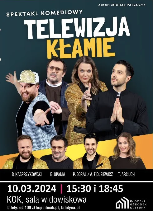 Autor spektaklu, Michał Paszczyk z kabaretu Paranienormalni, gwarantuje, że popłaczecie się ze śmiechu. Obsada: Bartosz Opania, Bartłomiej Kasprzykowski, Tamara Arciuch, Paweł Góral/Adam Fidusiewicz. Spektakl w Kłodzkim Ośrodku Kultury będzie można obejrzeć 10 marca o godz. 15.30 i 18.45. Biletu od 100 zł.