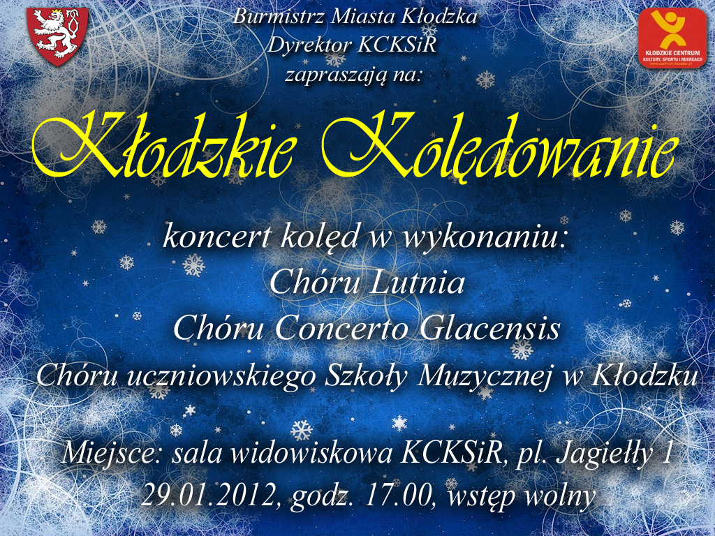 Kłodzczanie będą mogli usłyszeć kolędy i pastorałki wykonane przez Chór Concerto Glacensis, Chór Mieszany Lutnia oraz chór uczniowski Państwowej Szkoły Muzycznej w Kłodzku.