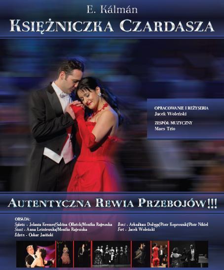 Czeka nas moc wrażeń: bądź co bądź „Czardaszka” to autentyczna rewia przebojów. Od początku do końca melodia goni melodię. A do tego grono wyśmienitych i pięknych śpiewaków, solistów Śląskiej Operetki Kameralnej. Przedstawienie to nieco skondensowana wersja operetki, jak przystało na scenę kameralną, ale z zachowaniem pełnej akcji teatralnej i wszystkich numerów muzycznych. Artyści Śląskiej Operetki Kameralnej prezentują ją na estradach filharmonicznych z orkiestrami symfonicznymi, zaś w mniejszych salach wraz ze znanym Zespołem Muzycznym Maes Trio.