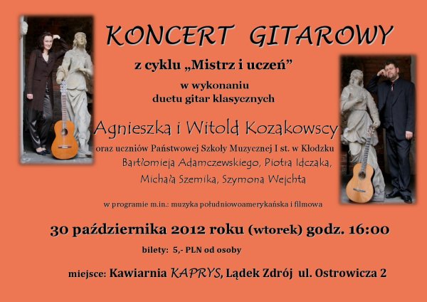 W najbliższy wtorek duet Agnieszka i Witold Koazkowscy grający na gitarach klasycznych wystąpią wspólnie z uczniami Państwowej Szkoły Muzycznej I st.