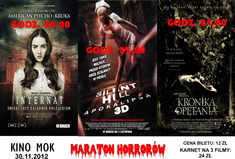 Zaprezentowane zostaną dwa filmy produkcji irlandzko-kanajdyski. Najpierw "Internat" w reżyserii Mary Harron. Zaraz po nim o godz. 22.00 rozpocznie się projekcja Silent Hill: Apokalipsa 3D. Polska premiera filmu odbyła się 2 listopada. Jako ostatnie o północy pokazane zostanie dzieło amerykańsko-kanadyjskie "Kronika opętania" wyreżyserowane przez Ole Bornedala.