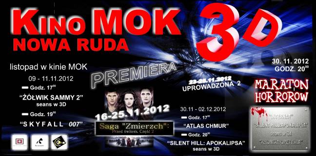 Kino Miejskiego Ośrodka Kultury w Nowej Rudzie weszło w XXI wieku. W piątek odbędzie się pierwsza projekcja filmu w technologii 3D. O 17.00 zaprezentowany zostanie film "Żółwik Sammy 2". Dwie godziny później noworudzka premiera najnowszych przygód Jamesa Bonda "Skyfall 007".