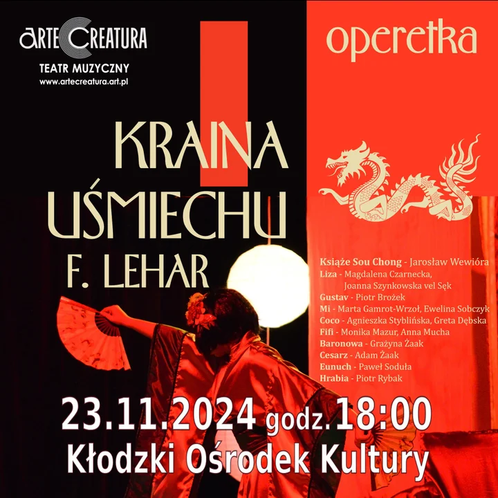 Kłodzko. Już dziś - w sobotę, 23 listopada 2024 roku, o godzinie 18:00, scena KOK zamieni się w krainę pełną emocji, barw i muzycznych uniesień dzięki operetce „Kraina uśmiechu” Franza Lehára.
