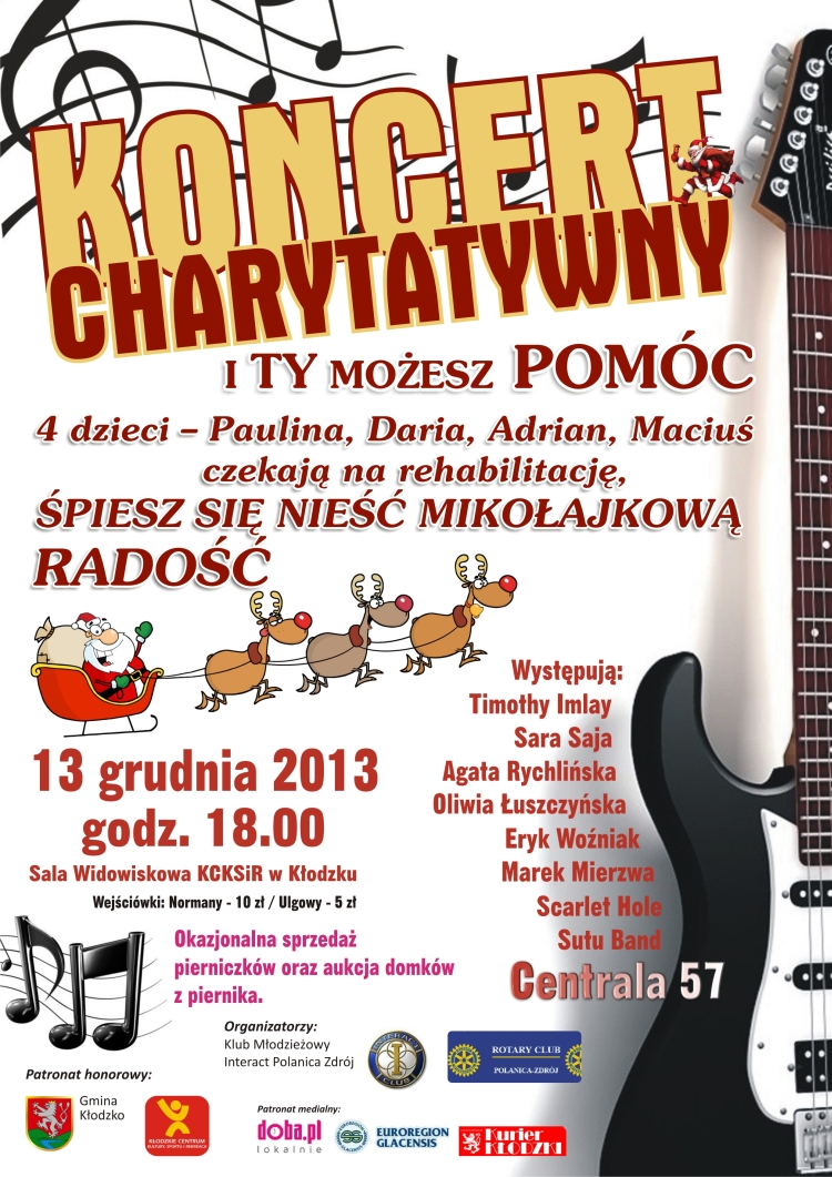 13 grudnia o godz. 18.00 zabrzmią dźwięki charytatywnego grania dla 4 dzieci, które czekają na rehabilitację.