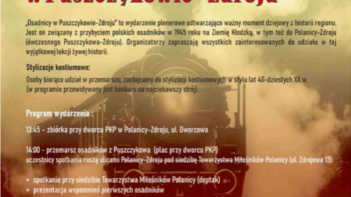 Organizatorzy zapraszają wszystkich chętnych do udziału w tym wyjątkowym wydarzeniu. Już od godziny 13.45 uczestnicy zbiorą się przy dworcu PKP w Polanicy-Zdroju, by o 14.00 wyruszyć w barwnym przemarszu ulicami miasta, aż do siedziby Towarzystwa Miłośników Polanicy. Osoby biorące udział zachęcane są do stylizacji kostiumowych inspirowanych latami 40. XX wieku – na uczestników czeka konkurs na najciekawszy strój osadnika-repatrianta.