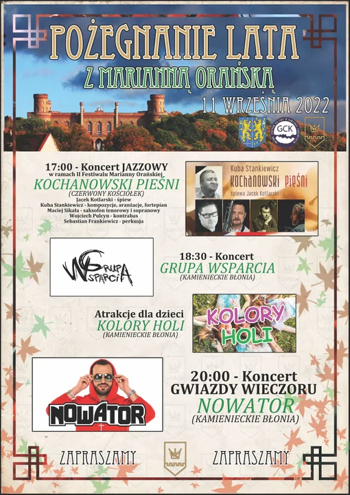 Wydarzenia związane z Pożegnaniem Lata zostały zaplanowane na niedzielę, 11 września w godz. 17:00 – 20:00. Jednak po wnętrzach i otoczeniu Pałacu Księżnej Marianny Orańskiej można spacerować przez cały dzień.