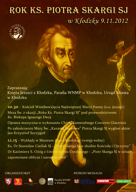 Ks. dr Stanisłąw cieślak Sj - Piotr Skarga w służbie Kościoła i Ojczyzny". Dr Kazimierz S. Ozóg z Uniwersytetu Opolskiego - "Piotr Skarga w sztuce: zapomniane oblicze i narodowy mit".