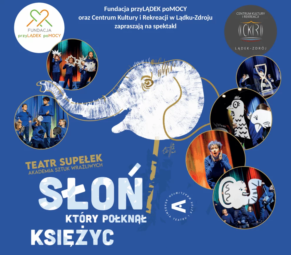 Lądek-Zdrój. Co się stanie na scenie? Wyobraźcie sobie słonia, który... przypadkiem połyka Księżyc! Efekt? Chaos totalny! Wilki nagle tracą swój charakterystyczny wyj, a inne zwierzęta szukają pomysłów, jak pomóc zagubionemu Słoniowi. Próby te pełne są śmiechu, strachu, a nawet jedzenia! A gdy Księżyc zaczyna powoli znikać, nasz bohater traci na wadze, co prowadzi do nieoczekiwanej, ale głębokiej więzi między Słoniem a Wilkiem.
