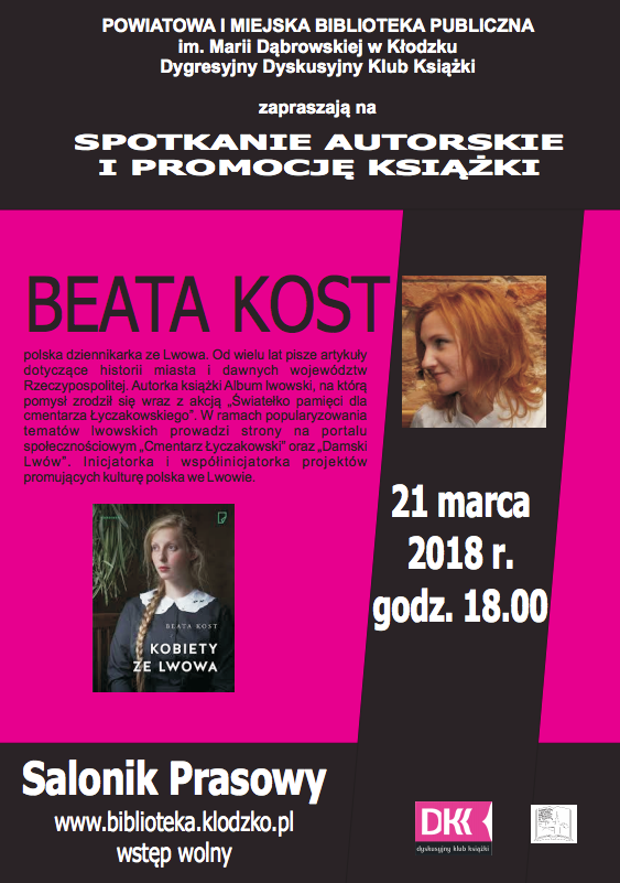 Spotkanie odbędzie się 21 marca 2018 r., godz.18.00 w Powiatowej i Miejskiej Bibliotece Publicznej im. Marii Dąbrowskiej w Kłodzku.
