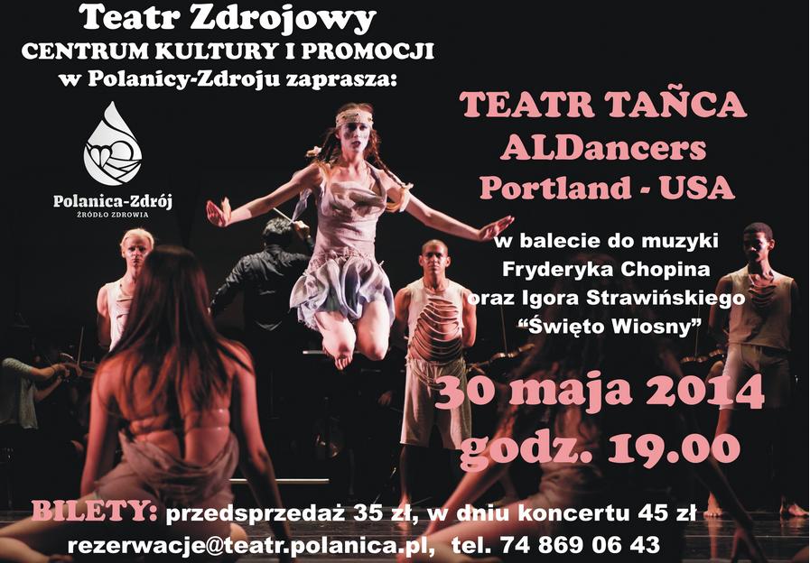 W piątkowy wieczór 30 maja 2014 r. o godz. 19.00 scenę Teatru Zdrojowego w Polanicy-Zdroju wypełni Teatr Tańca AlDancers Portland USA.