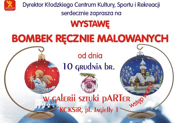 Od 10 grudnia w Galerii pARTer w KCKSiR (pl. Jagiełły 1) będzie można oglądać wystawę bombek ręcznie malowanych. Wstęp wolny.