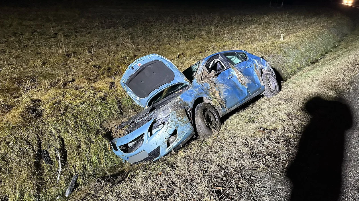 Kierujący samochodem marki Opel z nieustalonej na chwilę obecną przyczyny zjechał ze swojego pasa ruchu i wjechał do przydrożnego rowu.