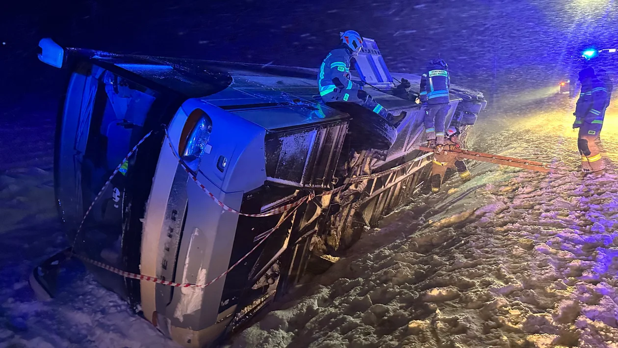W piątek, 3 stycznia, około godz. 19:30 na drodze krajowej nr 33, między Wilkanowem a Domaszkowem, silny wiatr na oblodzonej drodze zepchnął 3 osiowy autobus do rowu.
