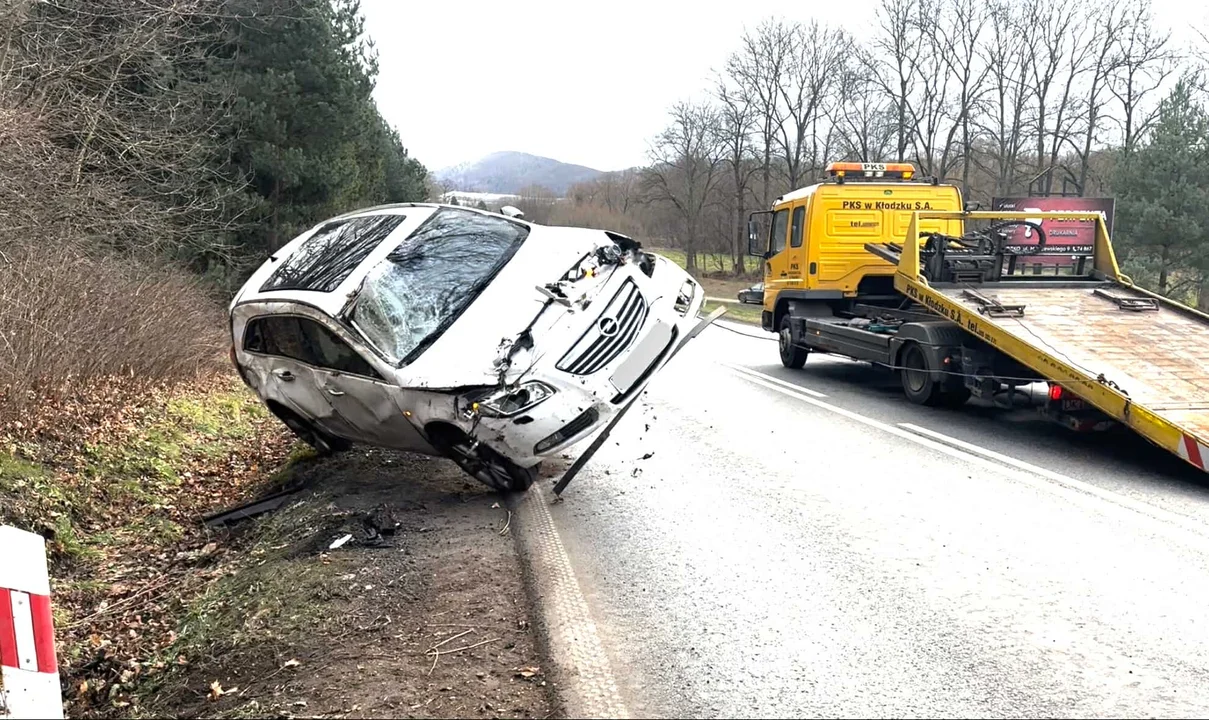Gmina Kłodzko. Dzisiaj, około godz. 8:00, w Żelaźnie kierujący oplem, jadąc w stronę Bystrzycy Kłodzkiej, na zakręcie stracił panowanie nad pojazdem. Mężczyzna zjechał z drogi, uderzył w skarpę, auto obróciło się i zatrzymało w rowie na dachu. Na szczęście nikomu nic się nie stało.