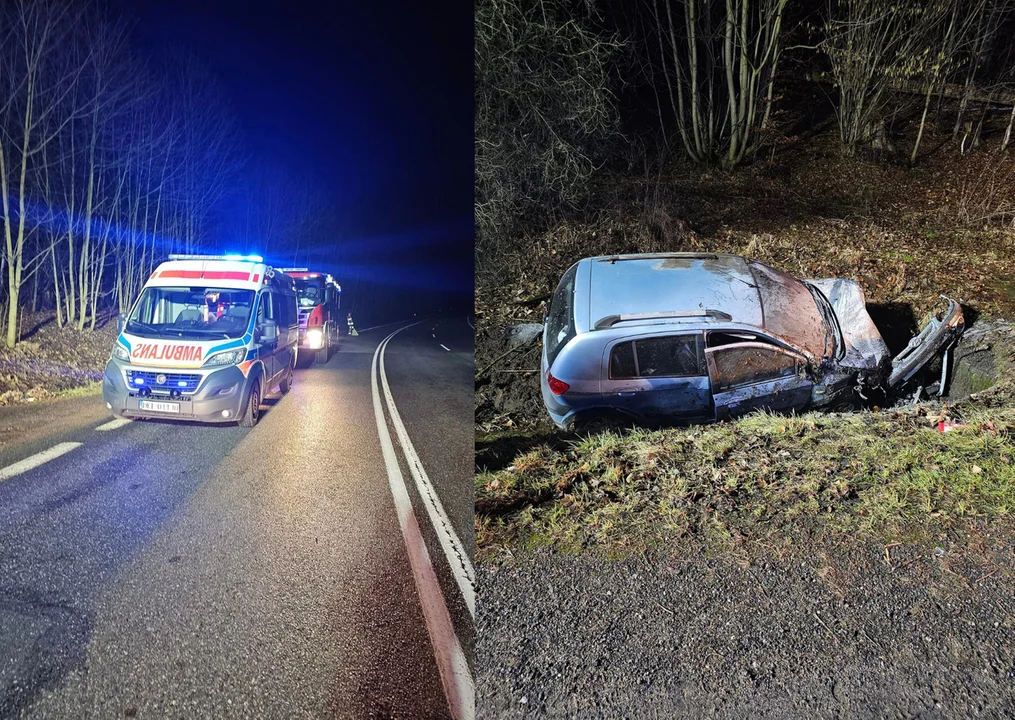 Gmina Lewin Kłodzki. Do zdarzenia doszło w środę, około godz. 23:15, na krajowej ósemce w miejscowości Zielone Ludowe. Kierujący samochodem marki Hyundai 41-latek wracając z Czech najprawdopodobniej zasnął z kierownicą i na zakręcie drogi wpadł do przydrożnego rowu.