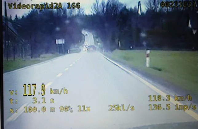 Gmina Międzylesie. Policjanci zauważyli zbyt szybko jadący samochód osobowy, miernik prędkości wskazał, że auto jechało z prędkością 117 km/h w obszarze zabudowanym, przekraczając tym samym prędkość o 67 km/h.