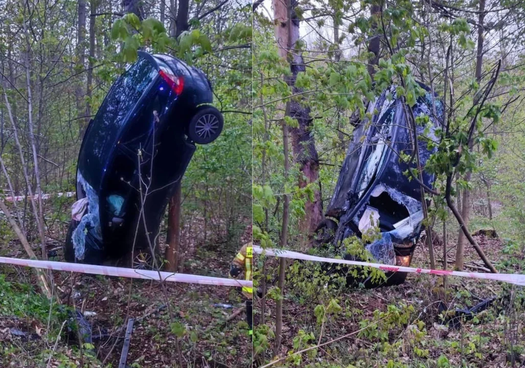Po przybyciu na miejsce zdarzenia i przeprowadzeniu rozpoznania strażacy ustalili, że samochód osobowy marki Citroen na zakręcie wypadł z drogi i uderzył w drzewo. W wyniku silnego uderzenia auto było ustawione w pozycji pionowej.