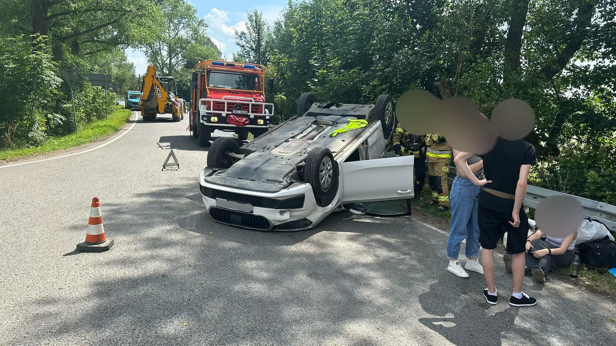 Po uderzeniu skody w bok ta przewróciła się na dach. Na szczęście, nikomu nic się nie stało.