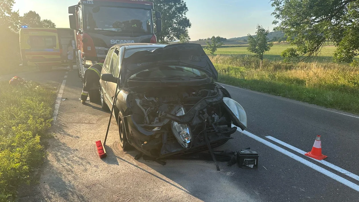 46-letnia kobieta kierująca Audi A4, podróżując z dwoma pasażerami, w tym z dzieckiem, zwolniła przed skrętem w prawo. W tym momencie na tył jej samochodu najechał 43-letni mężczyzna kierujący Renault Scenikiem, który prawdopodobnie nie zachował należytej uwagi na drodze. W renault, oprócz kierowcy, znajdowały się trzy osoby, w tym dwoje dzieci.