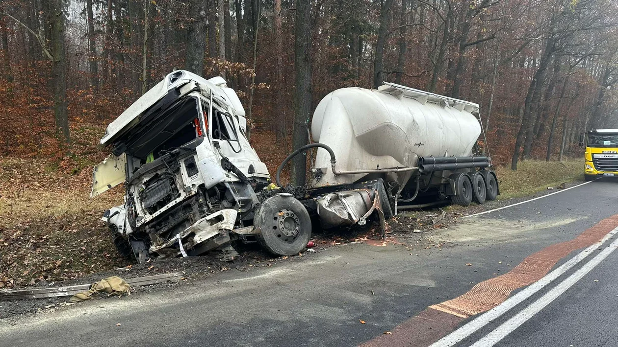 Na sygnaleNa drodze krajowej nr 46, między Jaszkówką a Przełęczą Kłodzką, kierowca ciężarówki uderzył w drzewo.