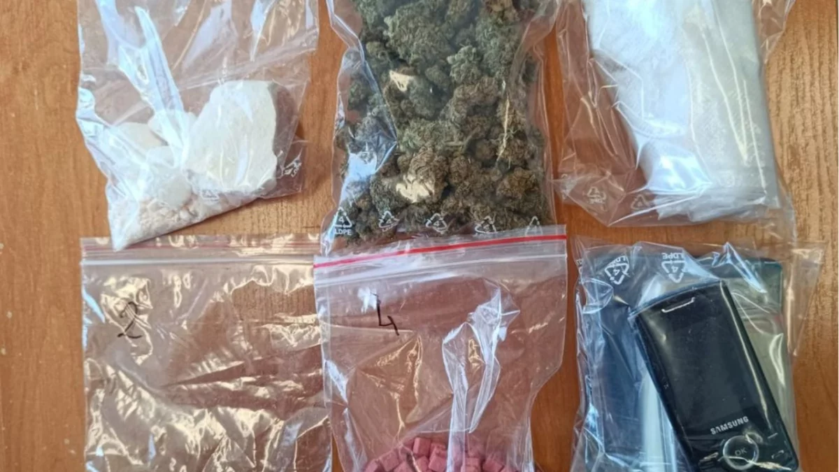 W trakcie przeszukania ujawniono foliowy worek schowany w szafce. W środku znajdowały się różowe tabletki, biały proszek oraz susz roślinny. Wstępne badania wykazały, że zabezpieczone substancje to amfetamina i marihuana, a także tabletki niewiadomego pochodzenia. Łącznie policjanci zabezpieczyli 211 gramów narkotyków i 112 tabletek.