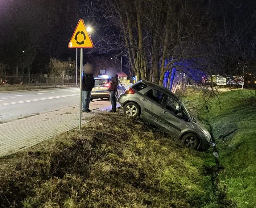 Uderzone i wybite z toru jazdy suzuki wpadło do rowu. Na szczęście, nikomu nic się nie stało