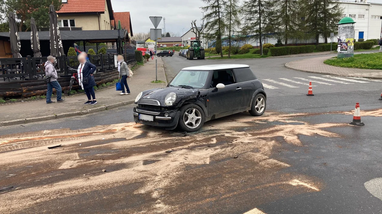 Kłodzko. W poniedziałkowe przedpołudnie kierujący mini, wyjeżdżając z drogi dojazdowej do sklepu, nie zauważył jadącego główna drogą passata, wyjechał na jego pas doprowadzając do kolizji. Dwie osoby zostały przetransportowane do szpitala