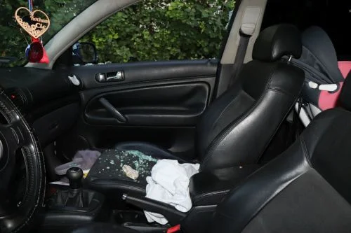 Po uszkodzeniu szyby, wyrwaniu lusterka i drzwi w pojeździe, sprawca wsiadł na rower i odjechał. Dziecko nie doznało obrażeń i pozostało pod opieką matki. Policjanci zatrzymali go, gdy był już w swoim mieszkaniu. Okazało się, że mężczyzna jest pod wpływem środków odurzających i alkoholu