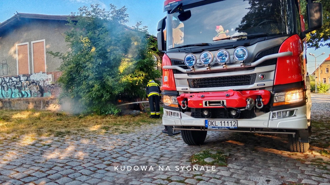 Kudowa-Zdrój. W niedzielę, 24 lipca, około godz. 6:40 strażacy z OSP Kudowa-Czermna otrzymali wezwanie do palącego się korzenia drzewa przy stacji PKP.