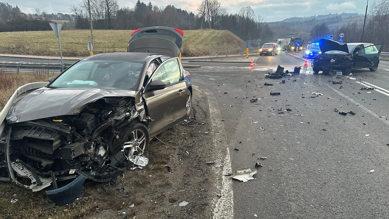 Niestety, nie ustąpił pierwszeństwa prawidłowo jadącemu kierowcy forda, co doprowadziło do kolizji. W wyniku uderzenia ford został wybity z toru jazdy i wpadł na barierki energochłonne znajdujące się przy drodze. Kierujący fordem odniósł obrażenia i został przewieziony do szpitala.