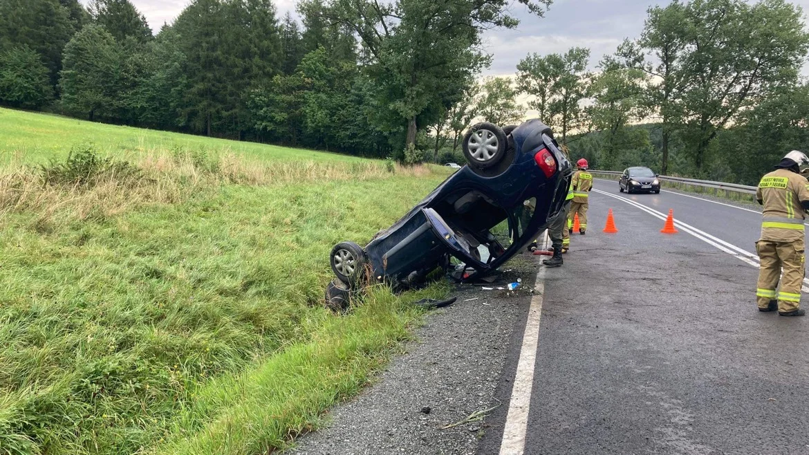 Podzamek. Około godz. 9:00, na drodze krajowej nr 46, kierowca citroena z nieustalonych przyczyn stracił panowanie nad pojazdem i wypadł z zakrętu. Auto wpadło do rowu, zatrzymując się na dachu.