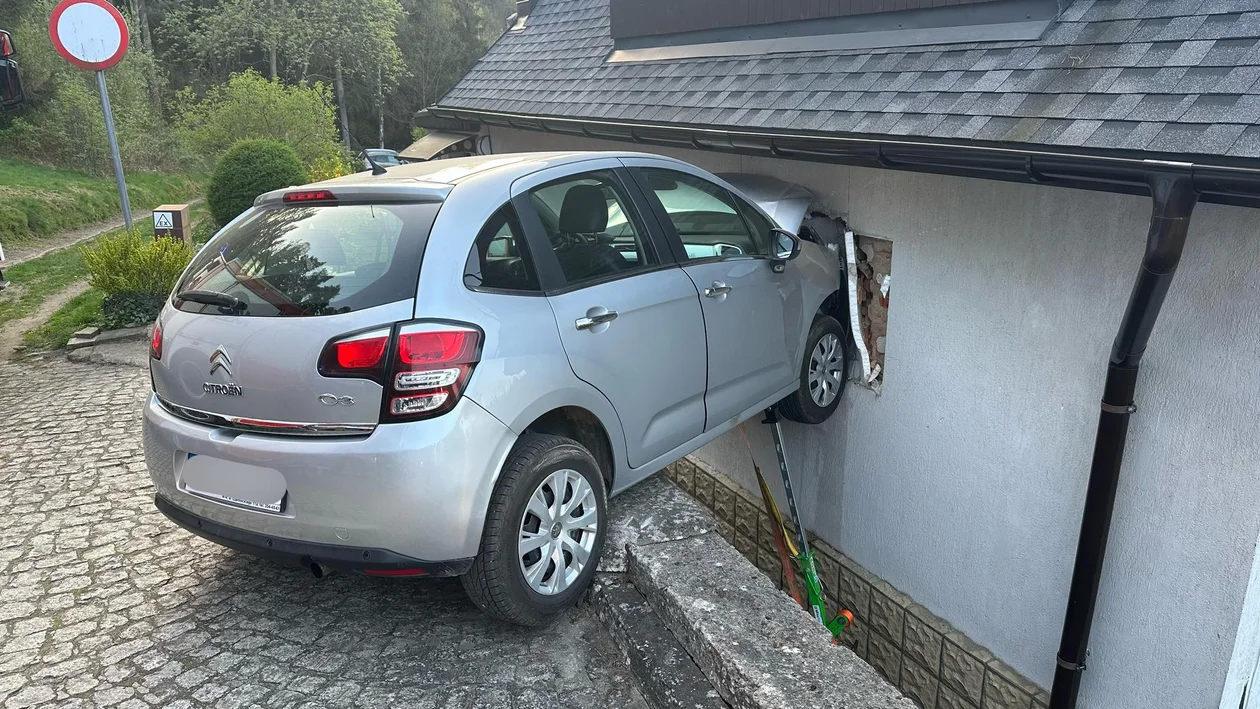 Polanica-Zdrój. W czwartek, 11 kwietnia, około godz. 17:40 na ul. Dębowej kierujący citroenem z niewiadomych przyczyn nie zapanował nad pojazdem i uderzył w budynek mieszkalny. Auto, którym podróżowały dwie osoby, przebiło ścianę budynku.