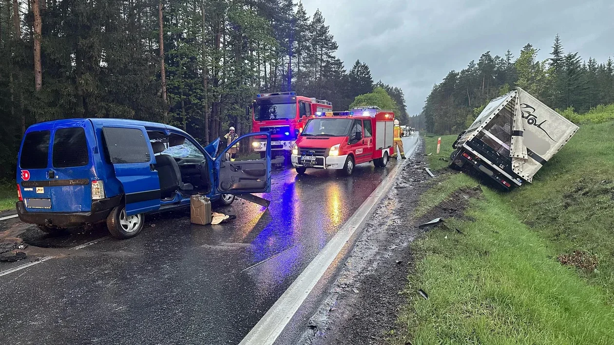 Krajowa ósemka. W poniedziałek, 15 kwietnia, między Polanicą-Zdrój a Szczytną, doszło do zderzenia trzech aut. Kierujący busem, jadąc w stronę Kudowy-Zdroju, wyprzedzał ciężarówki. Jadący lewym pasem kierowca volkswagena, chcąc uniknąć zderzenia zaczął hamować i uciekać w prawo.
