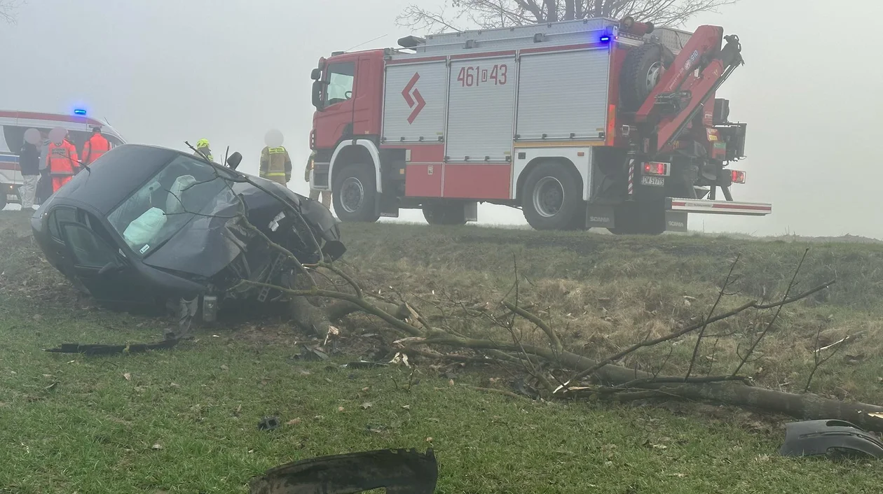 W wyniku tego manewru, kierująca przejechała przez rów i uderzyła w drzewo. Kierujący który wyprzedzał, nie zważając że naprzeciw niego jedzie auto, uciekł z miejsca zdarzenia.