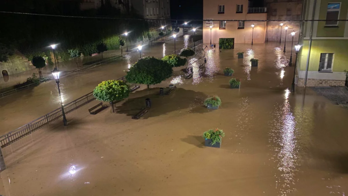 - Kłodzko - aktualny stan: 645,5 cm, stan alarmowy: 240 cm, stan maksymalny: 655 cm