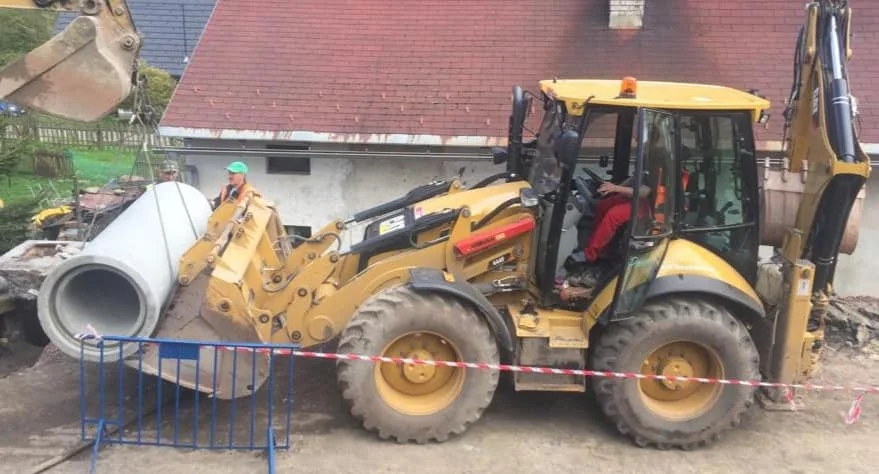 Koparka na chwilę stanęła za stacją Orlen w Dusznikach-Zdrój. Ostatni ślad był w Polanicy-Zdrój