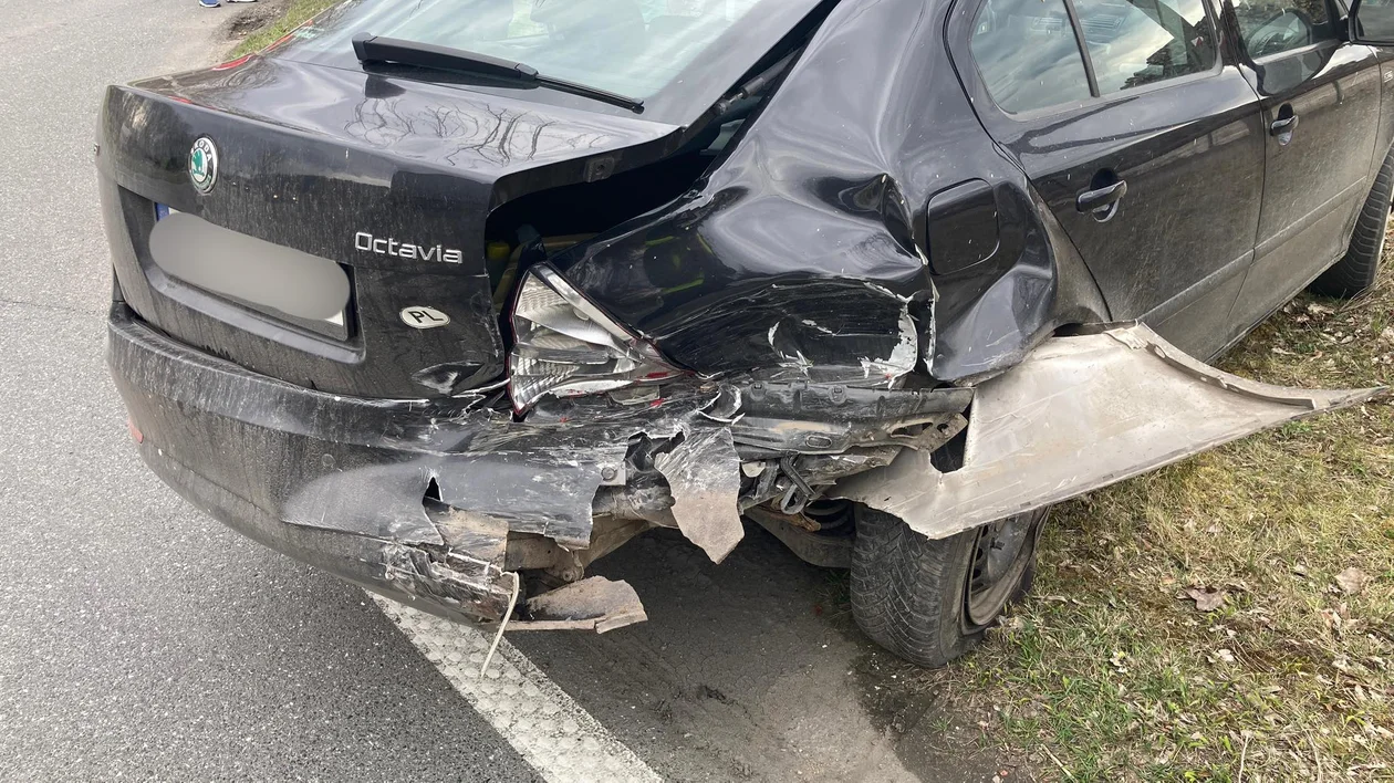 Kierujący Skodą zatrzymał się na skrzyżowaniu chcąc skręcić w lewo. Za nim jechał kierujący volkswagenem, który nie zauważył zatrzymującej się skody i najechał na jej tył.