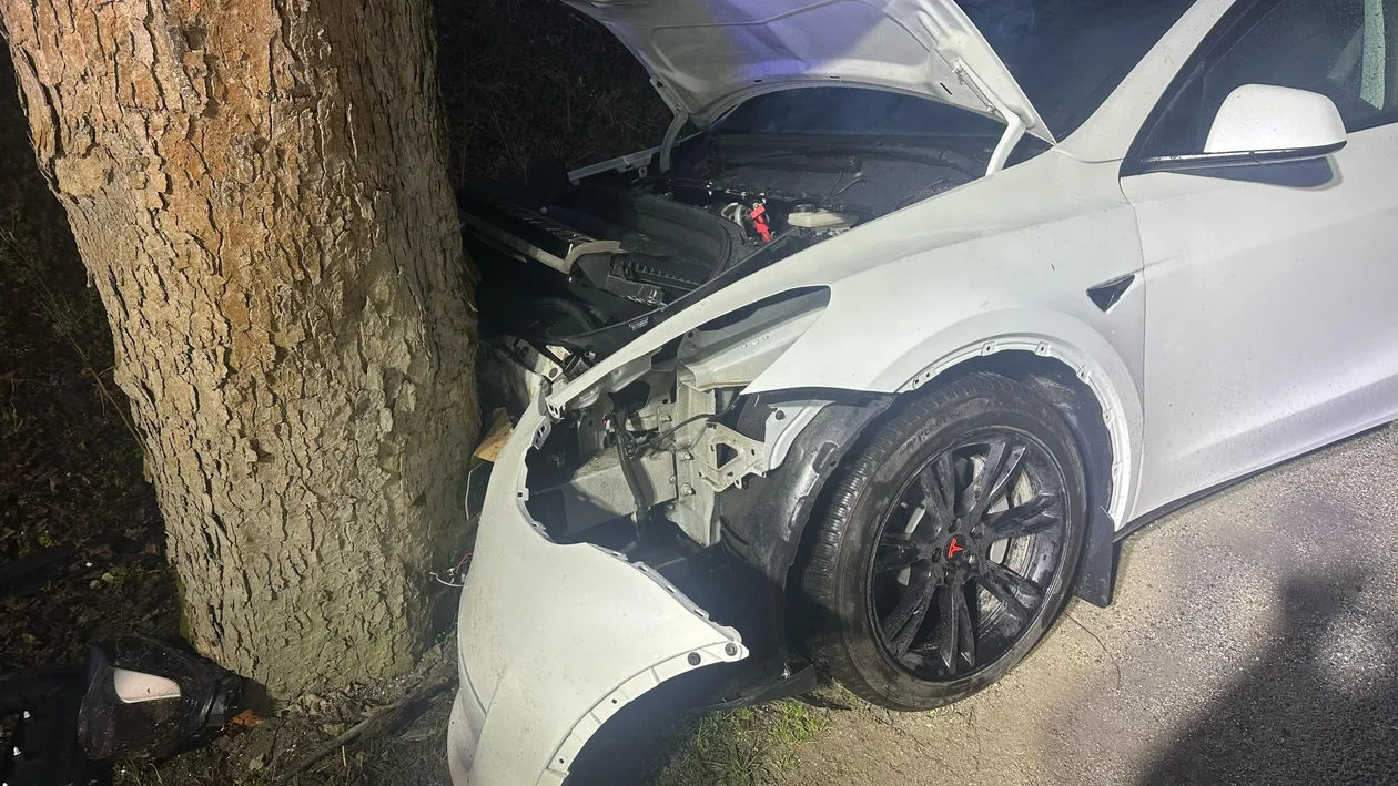 Na sygnaleTesla uderzyła w drzewo